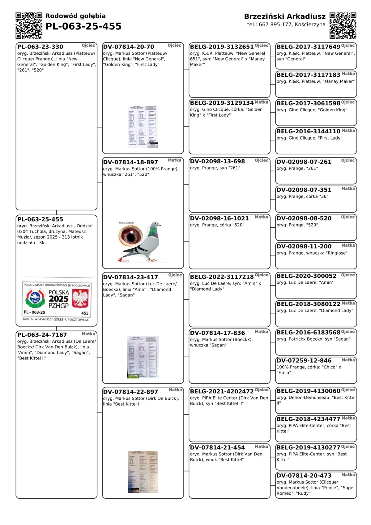 Lp. | Lot | Data | Dystans [km] | Ilość gołębi | Pozycja gołębnik | Pozycja oddział (GL) | Prędkość [m/min] | Coeff. |