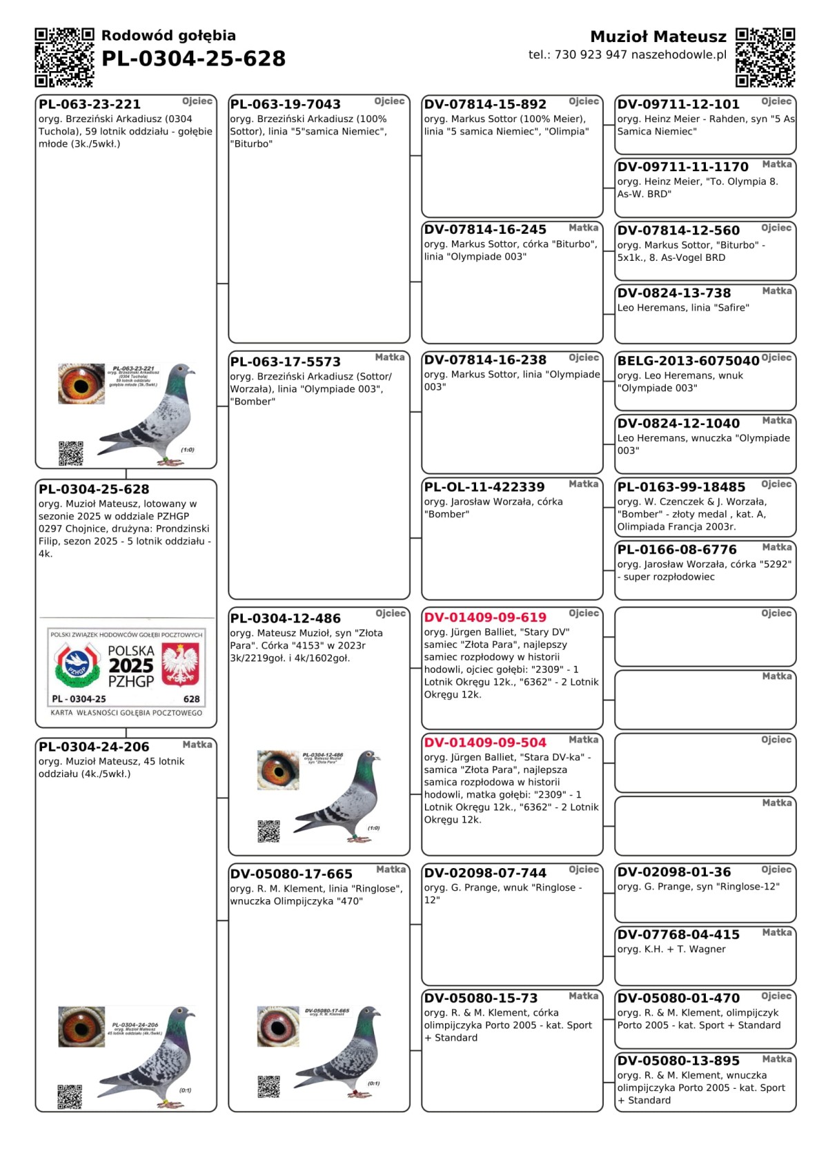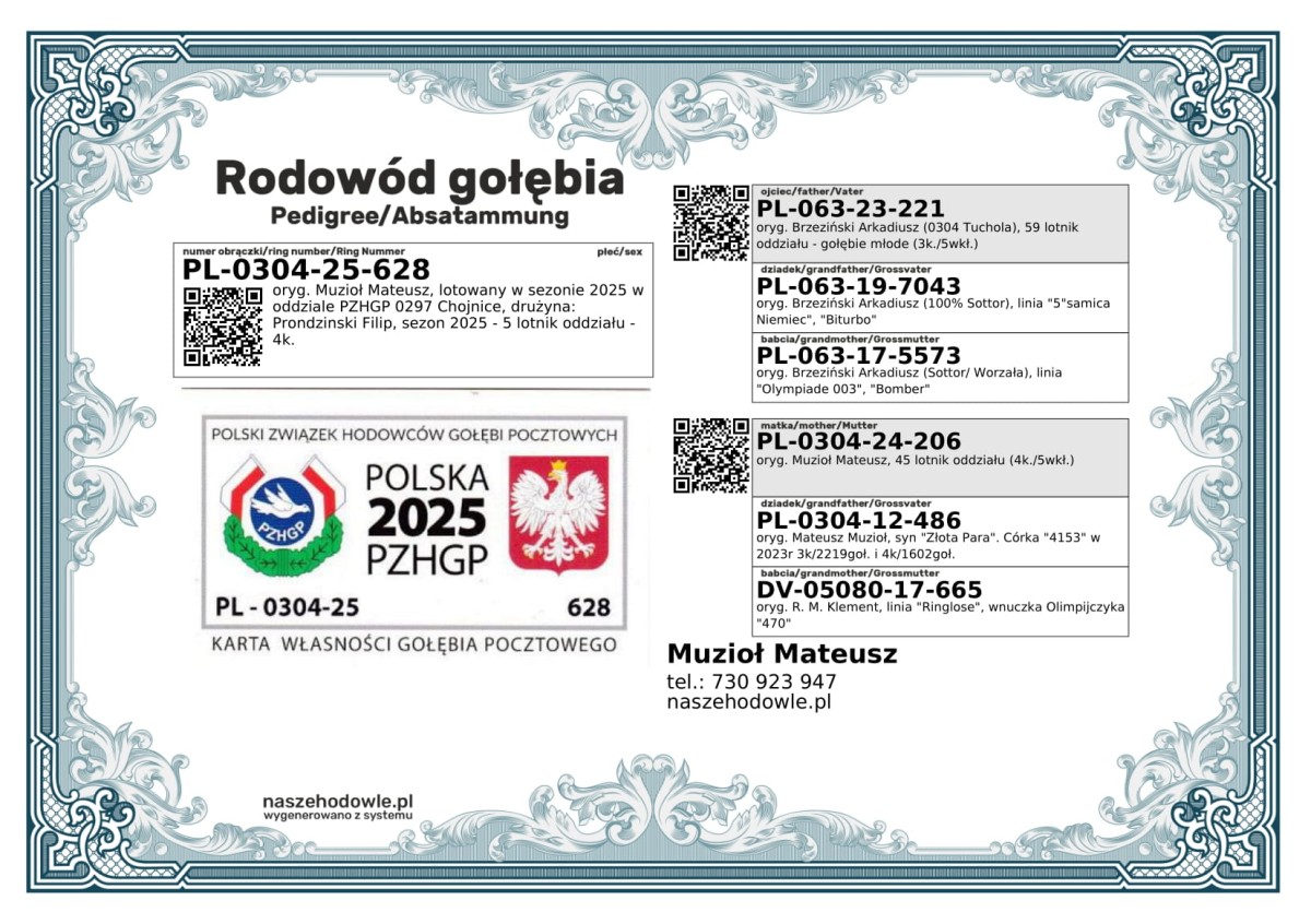 Lp. | Lot | Data | Dystans [km] | Ilość gołębi | Pozycja gołębnik | Pozycja oddział (GL) | Prędkość [m/min] | Coeff. |