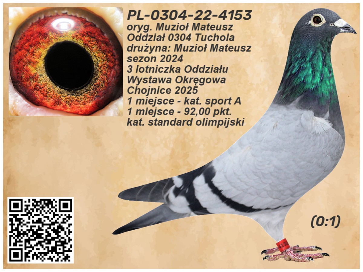 PL-0304-22-4153oryg. Muzioł Mateusz - Oddział 0304 Tuchola, drużyna: Muzioł Mateusz, sezon 2024 - 3 lotniczka Oddziału, Wystawa Okręgu Pomorza Środkowego - Chojnice 2025 - 1 miejsce - kat. sport A, 1 miejsce - 92,00 pkt. - kat. "standard olimpijski", reprezentantka Okręgu na Wystawę Ogólnopolską Katowice 2026