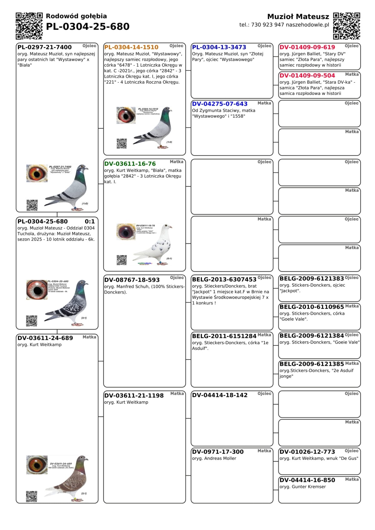 | Lp. | Lot | Data | Dystans [km] | Ilość gołębi | Pozycja gołębnik | Pozycja oddział (GL) | Prędkość [m/min] | Coeff. |