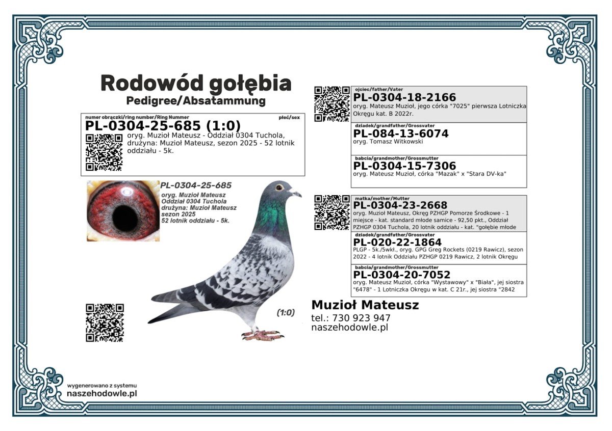 PL-0304-25-685oryg. Muzioł Mateusz - Oddział 0304 Tuchola, drużyna: Muzioł Mateusz, sezon 2025 - 52 lotnik oddziału - 5k.